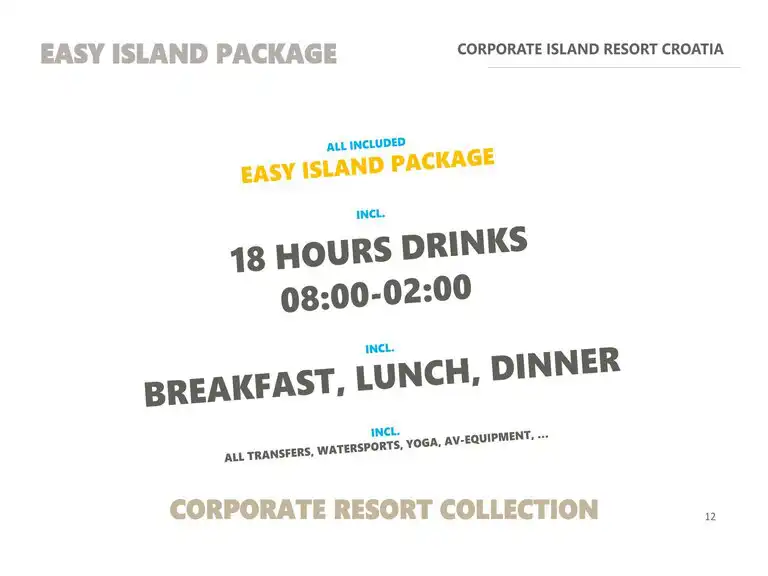 Unser Corporate Island Resort ist ein außergewöhnliches Reiseziel und eine einzigartige Eventlocation, die sich Deinen Wünschen ganz individuell anpasst und mit wunderschöner Natur punktet. Umgeben von kristallklarem Wasser findest Du hier alles, was Du brauchst, an einem Fleck – egal, ob Dein Ziel Mitarbeitermotivation, Teambuilding oder Personalentwicklung ist.