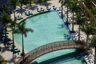 Neben der modernen Ausstattung mit viel Platz für Tagungen und weitere Veranstaltungen, begeistern die luxuriösen Zimmer mit einem fantastischen Panoramablick auf das Meer und den 80 Meter langen Pool, der zum Abkühlen und Entspannen einlädt. Direkt an das Haupthotel schließt sich die jüngere Hotelvariante an, die einem lockeren Lifestyle entspricht. Das Resort ist somit das ideale Reiseziel für legere und gehobene Ansprüche.