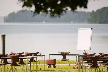 Für Tagungen, Workshops oder Teambuildings bietet das Resort neben klassischen Tagungsräumen auch die Möglichkeit, außergewöhnliche Tagungsplätze zu nutzen. Mit traumhaftem Seeblick aus dem Penthouse oder in lockerer Atmosphäre in der extra für Tagungen umgebauten Turnhalle. Auch draußen am eigenen See-Strand oder einfach direkt auf einem Floß im Wasser – vergessen wird diese Locations so schnell niemand!