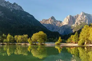 Das Private Lake & Mountain Resort liegt an einem kleinen Bergsee in den slowenischen Alpen. Das Panorama der Berge ist gigantisch, belebt und entspannt zugleich.